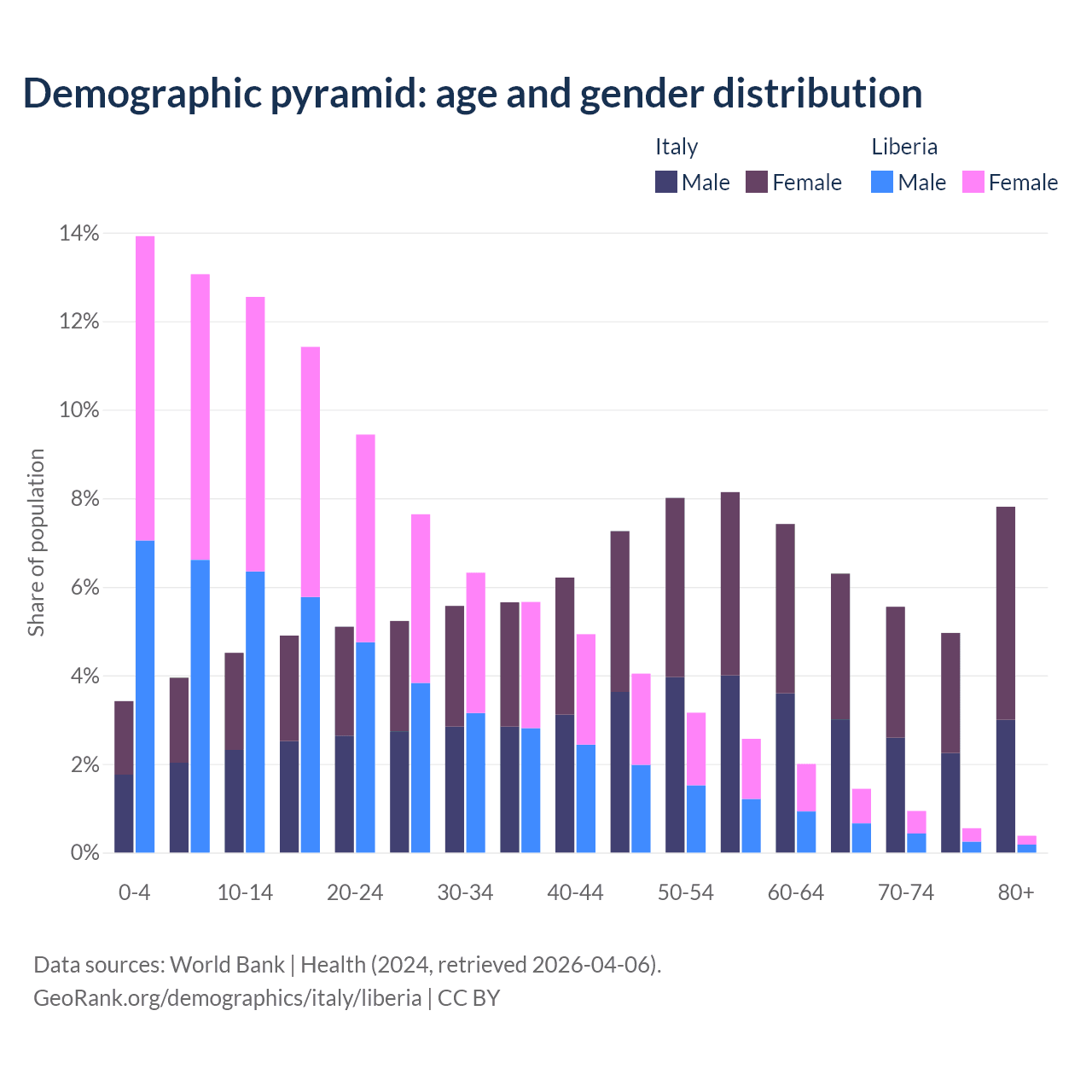 Demographics of Italy compared to Liberia: