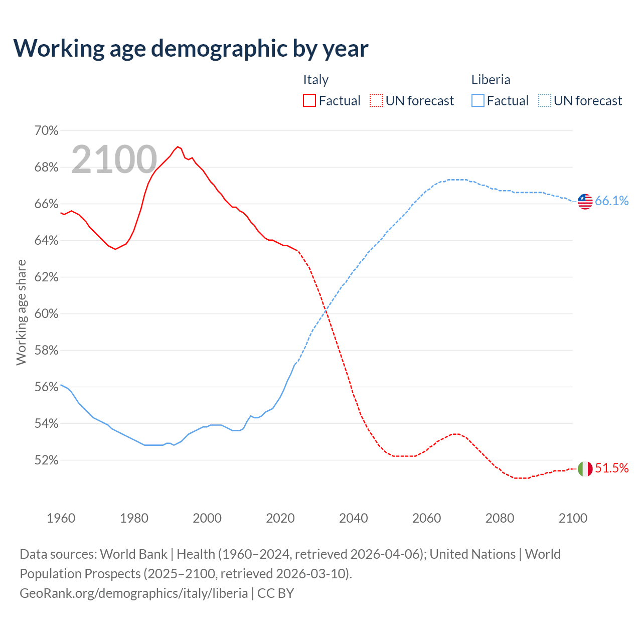 - Italy has 37.2M working age adults (aged 15-64) vs 3.37M in Liberia.