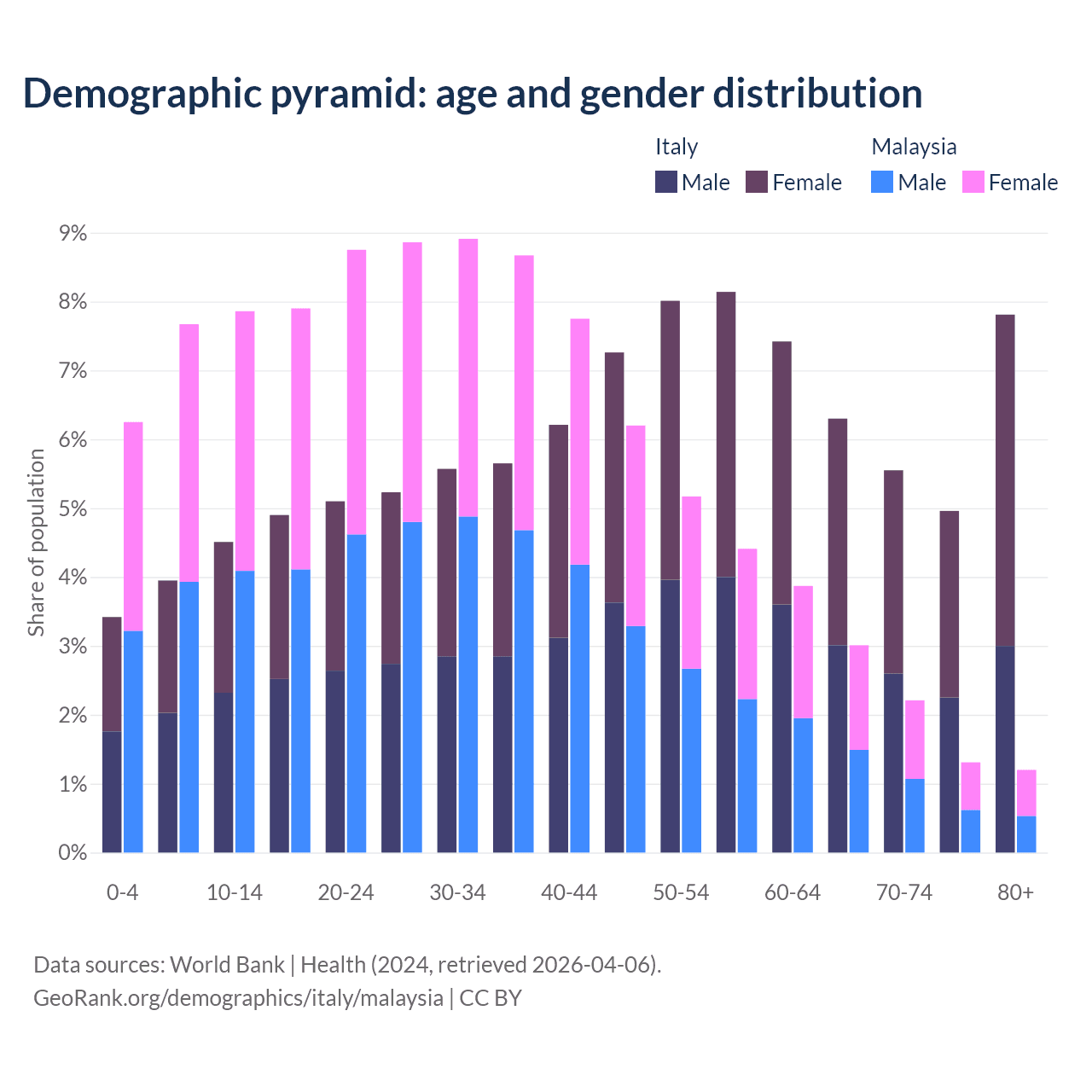 Demographics of Italy compared to Malaysia: