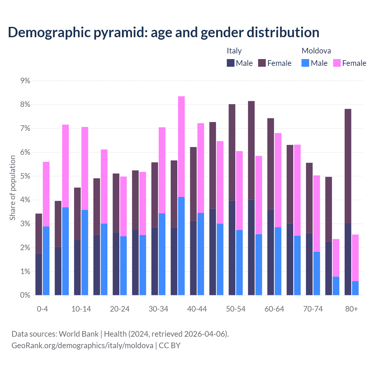 Demographics of Italy compared to Moldova: