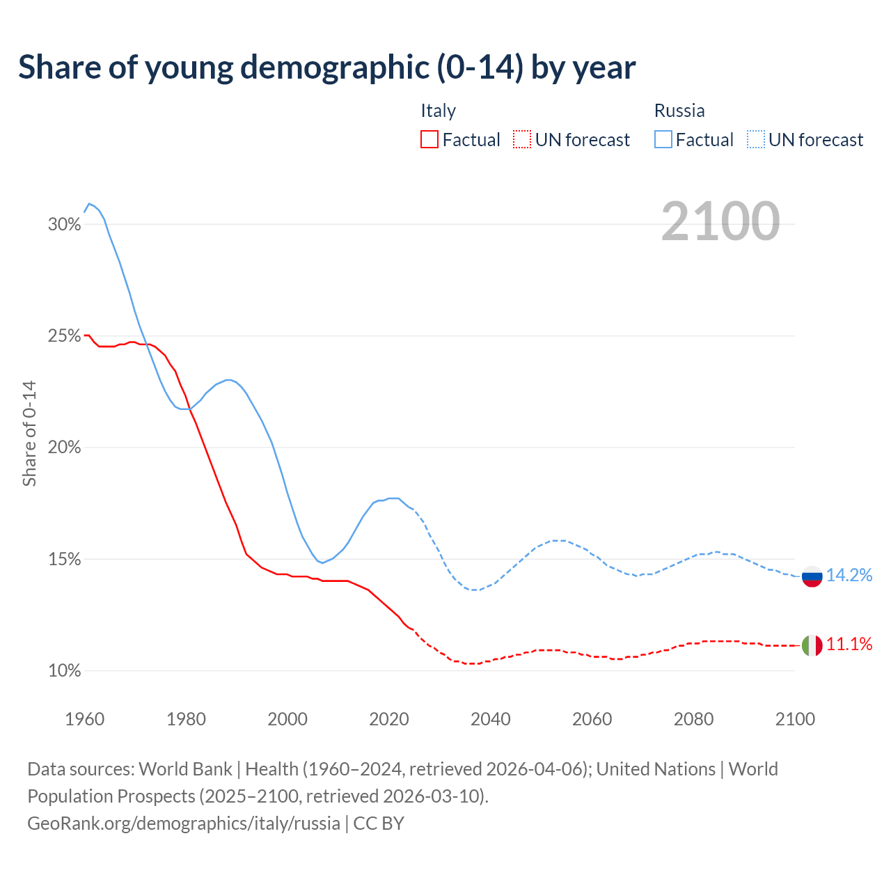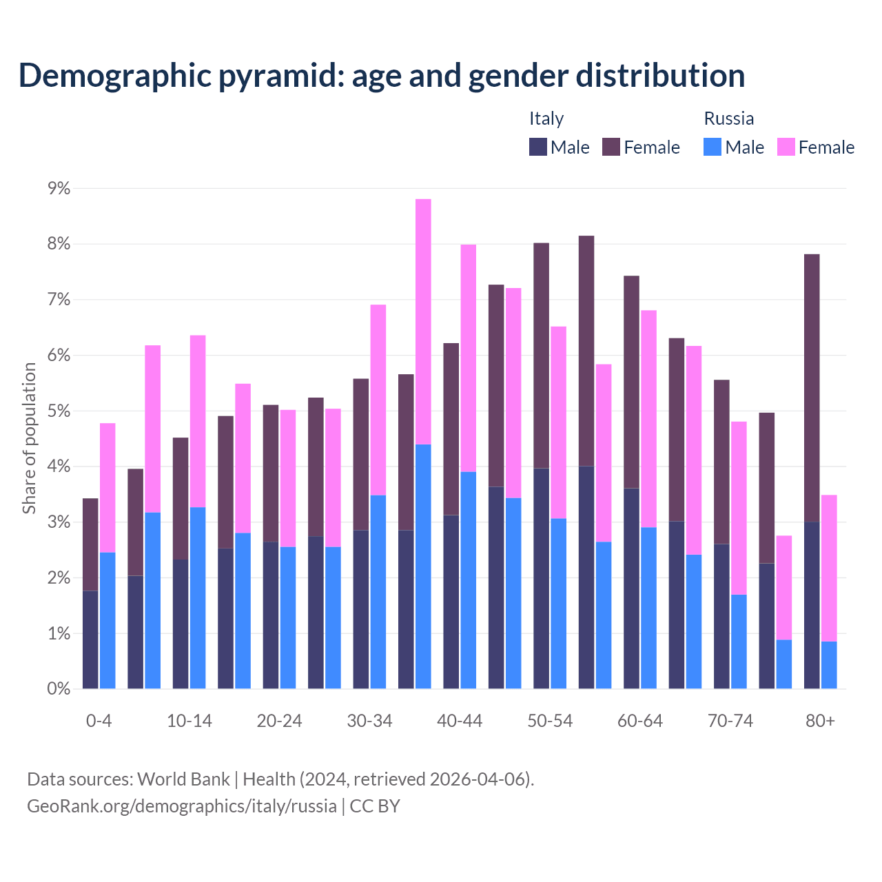 Demographics of Italy compared to Russia: