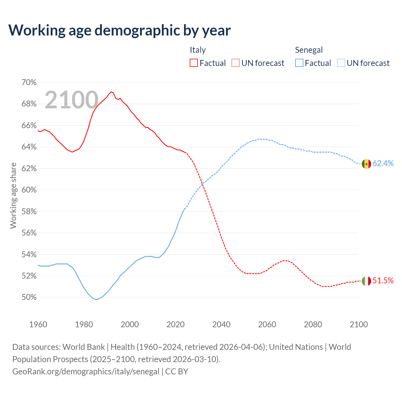 - Italy has 37.2M working age adults (aged 15-64) vs 11.3M in Senegal.