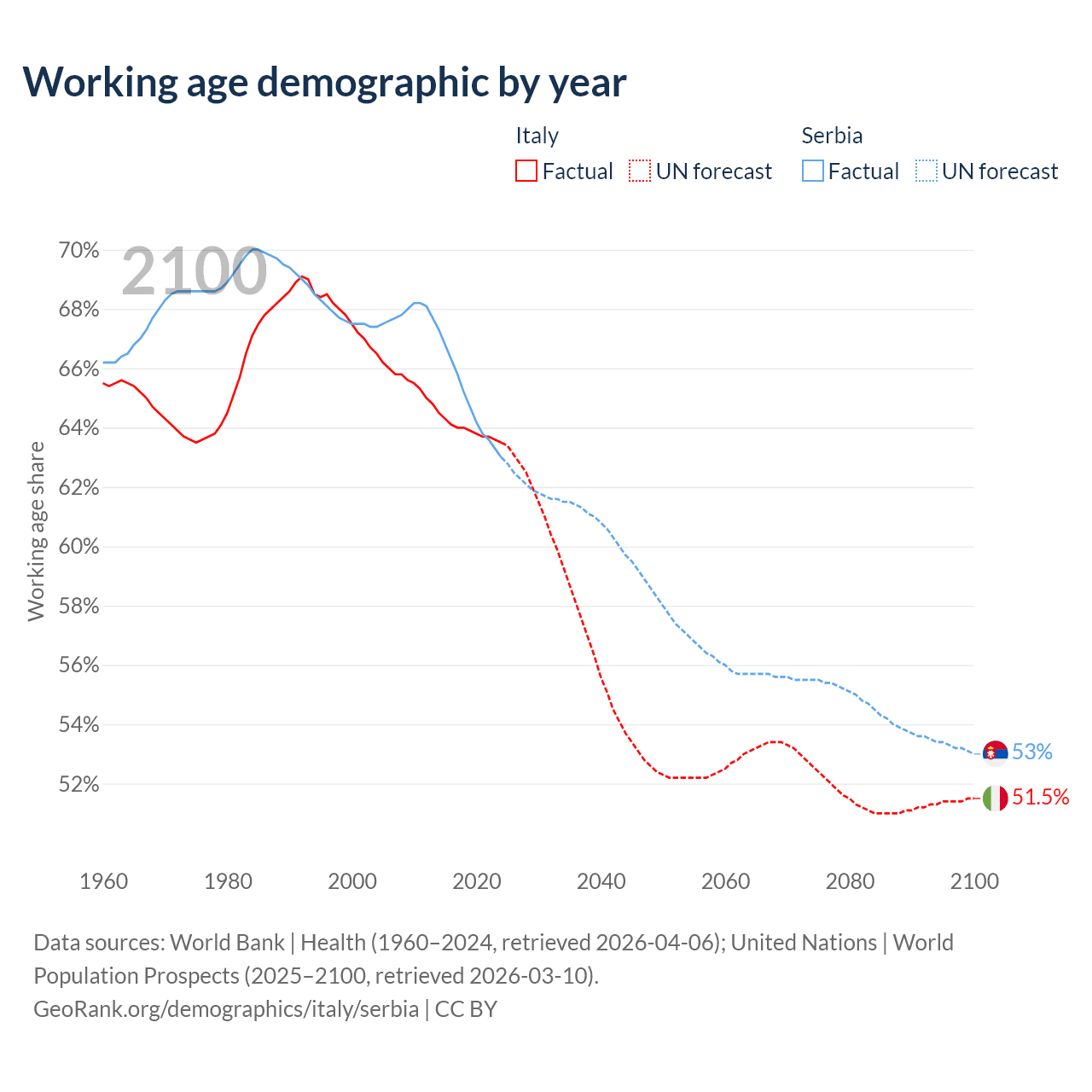- Italy has 37.2M working age adults (aged 15-64) vs 4.09M in Serbia.