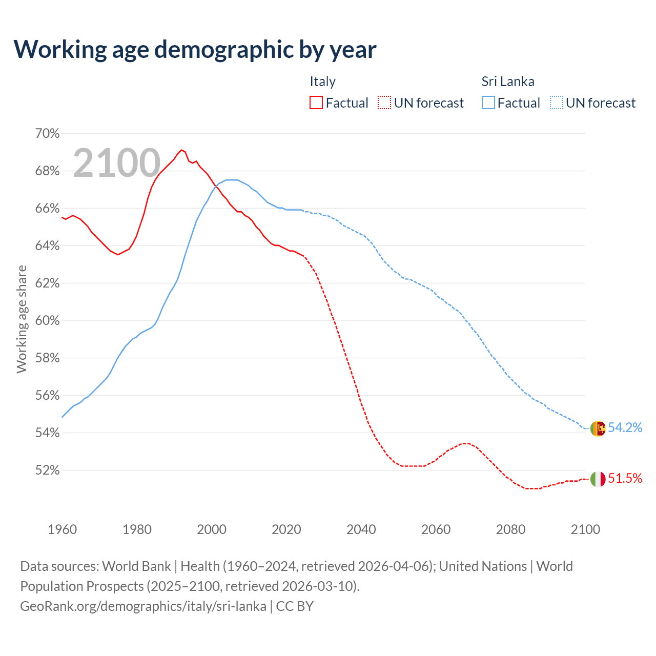 - Italy has 37.2M working age adults (aged 15-64) vs 14.6M in Sri Lanka.