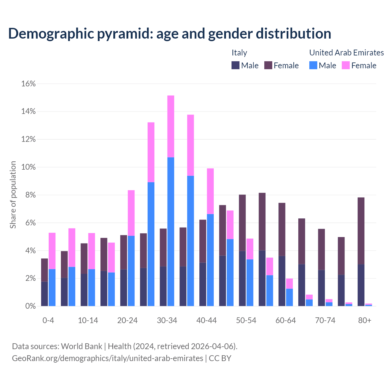 Demographics of Italy compared to the United Arab Emirates:
