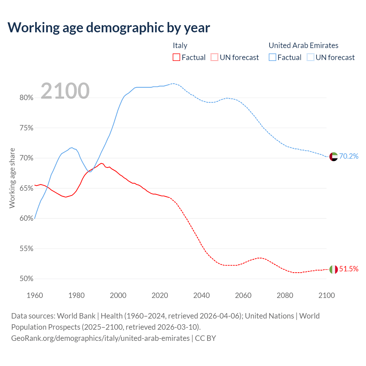 - Italy has 37.2M working age adults (aged 15-64) vs 9.6M in the United Arab Emirates.