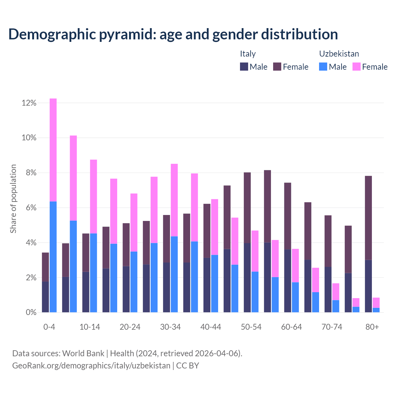 Demographics of Italy compared to Uzbekistan: