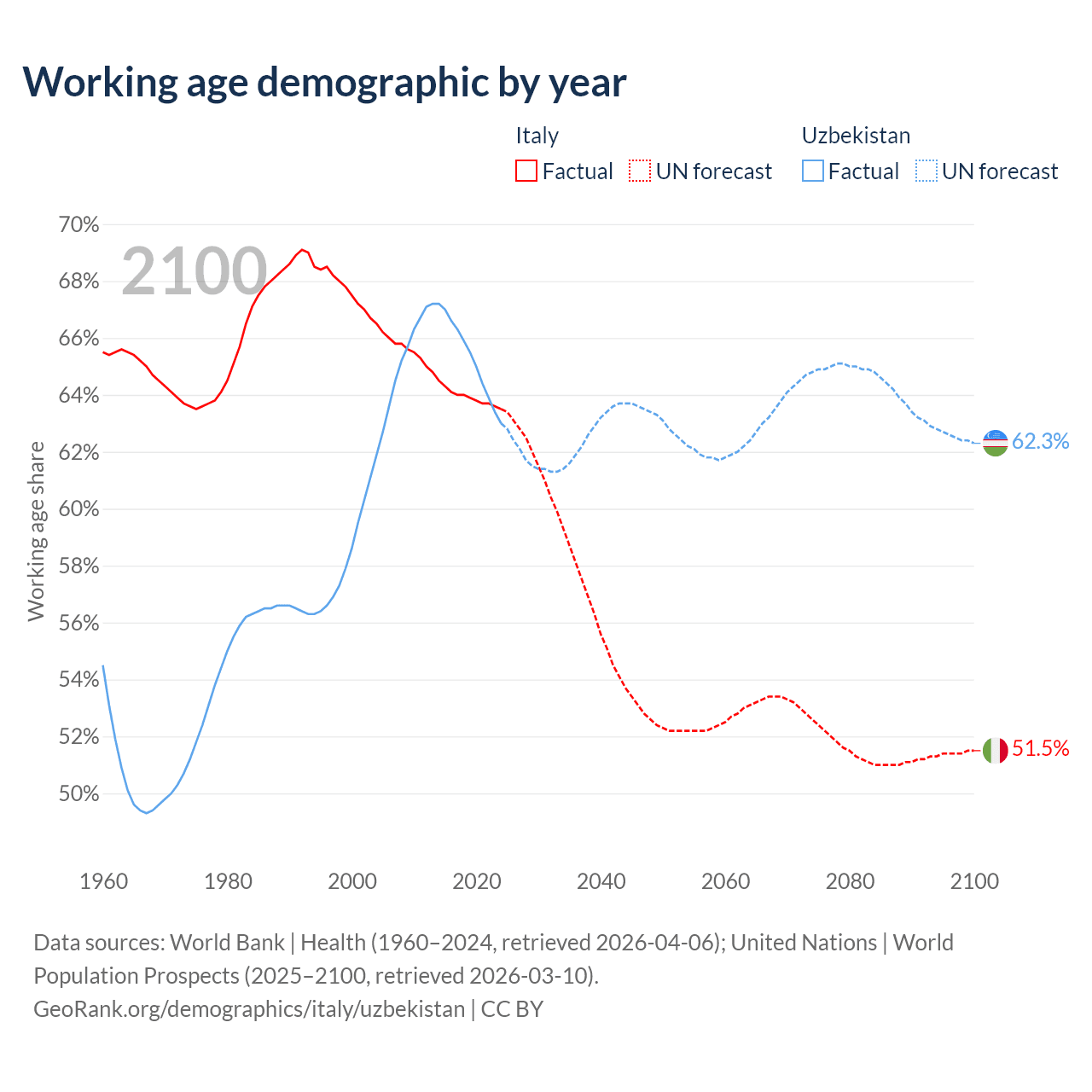 - Italy has 37.2M working age adults (aged 15-64) vs 23.9M in Uzbekistan.