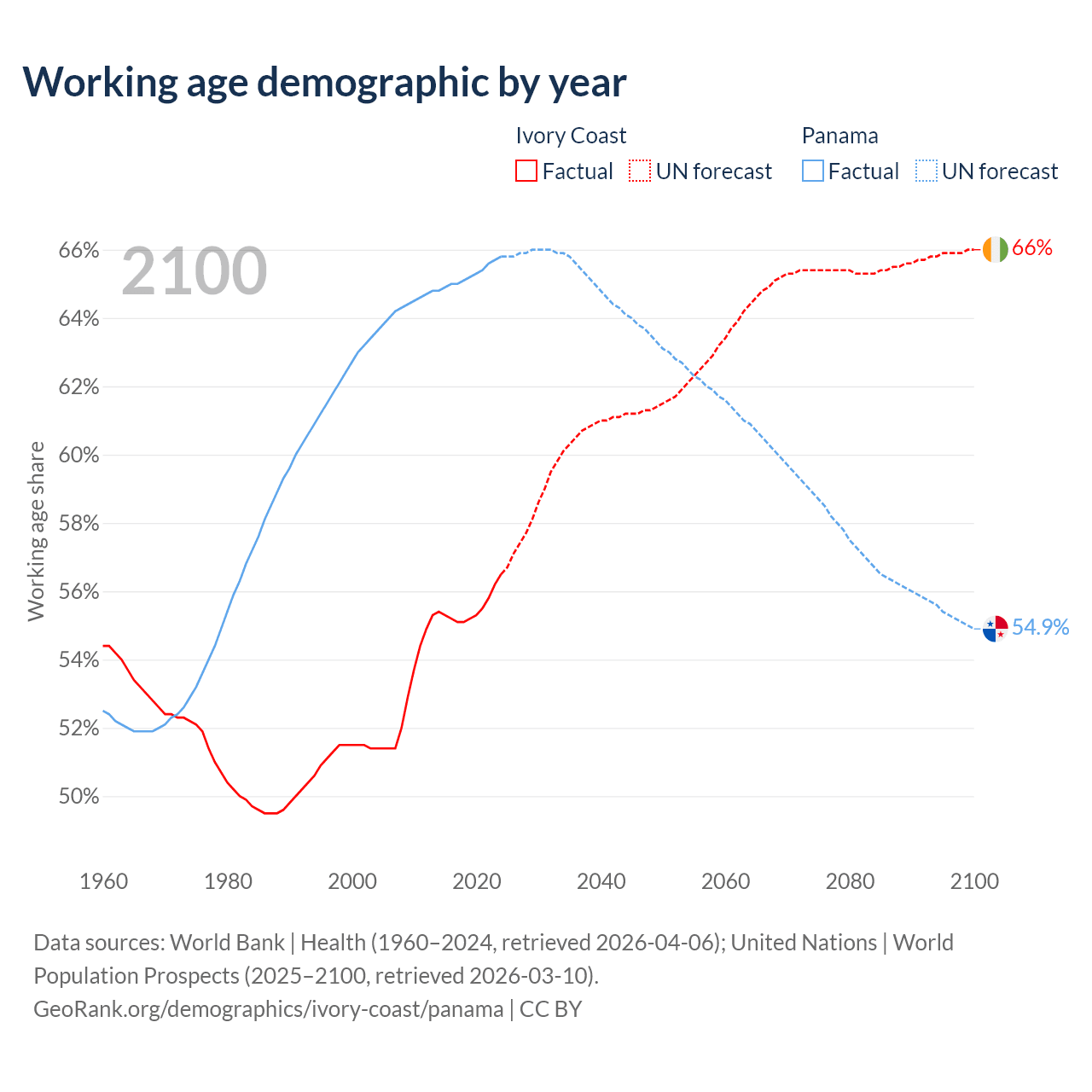 - Ivory Coast has 19.1M working age adults (aged 15-64) vs 3.05M in Panama.
