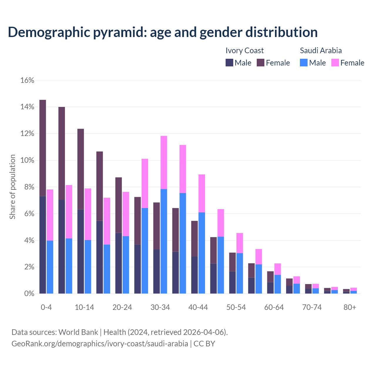 Demographics of Ivory Coast compared to Saudi Arabia: