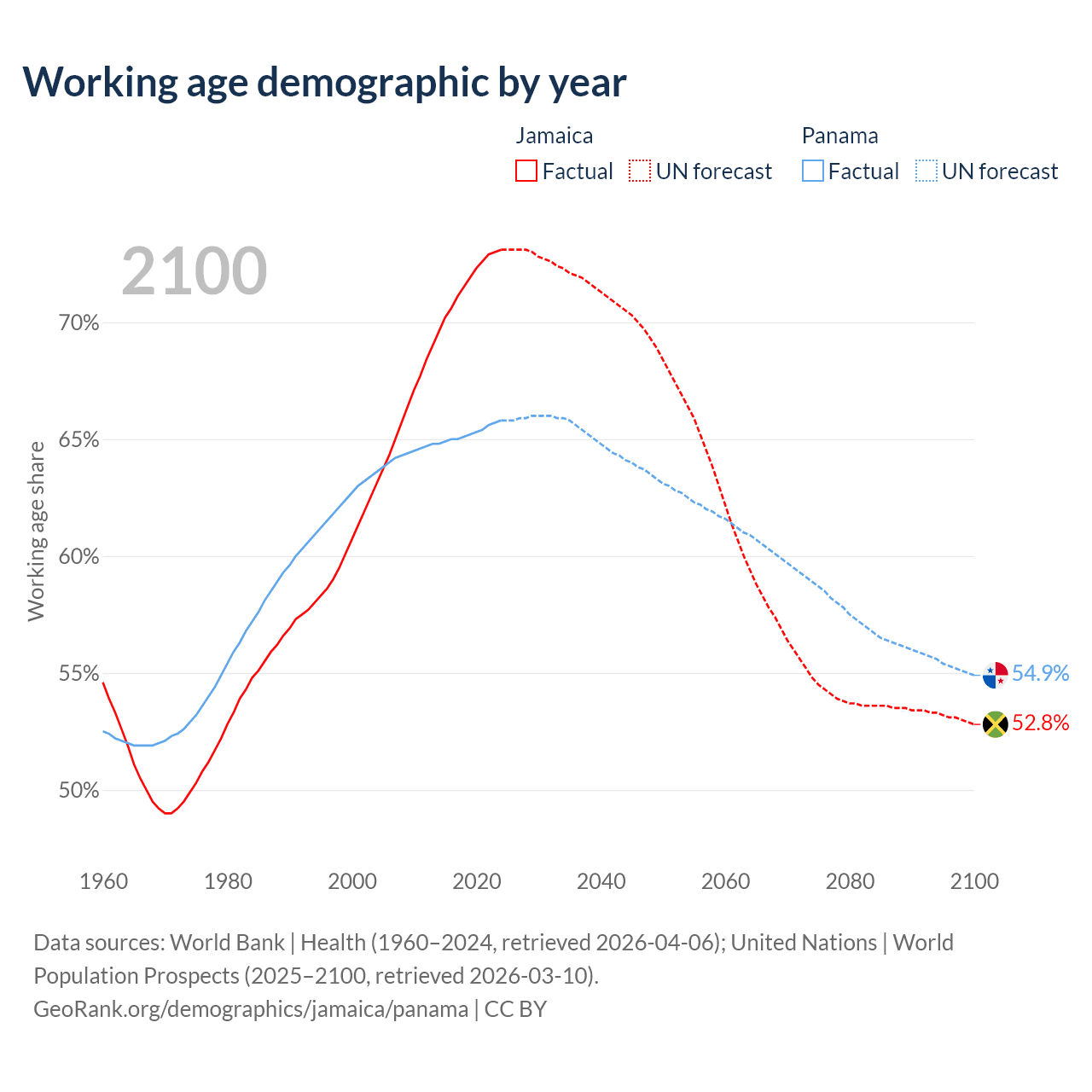 - Jamaica has 2.07M working age adults (aged 15-64) vs 3.05M in Panama.