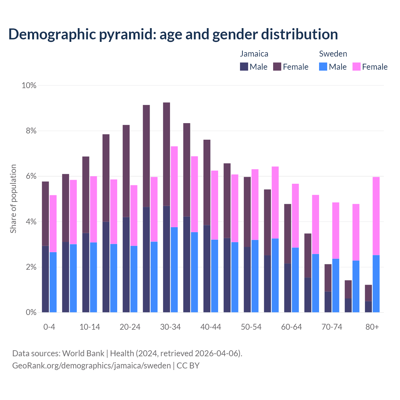 Demographics of Jamaica compared to Sweden:
