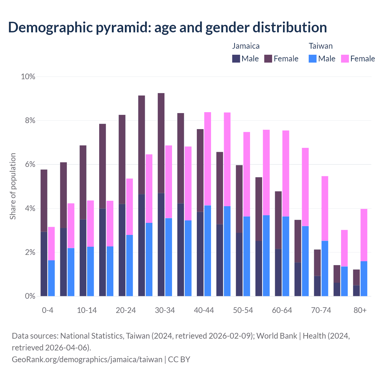 Demographics of Jamaica compared to Taiwan:
