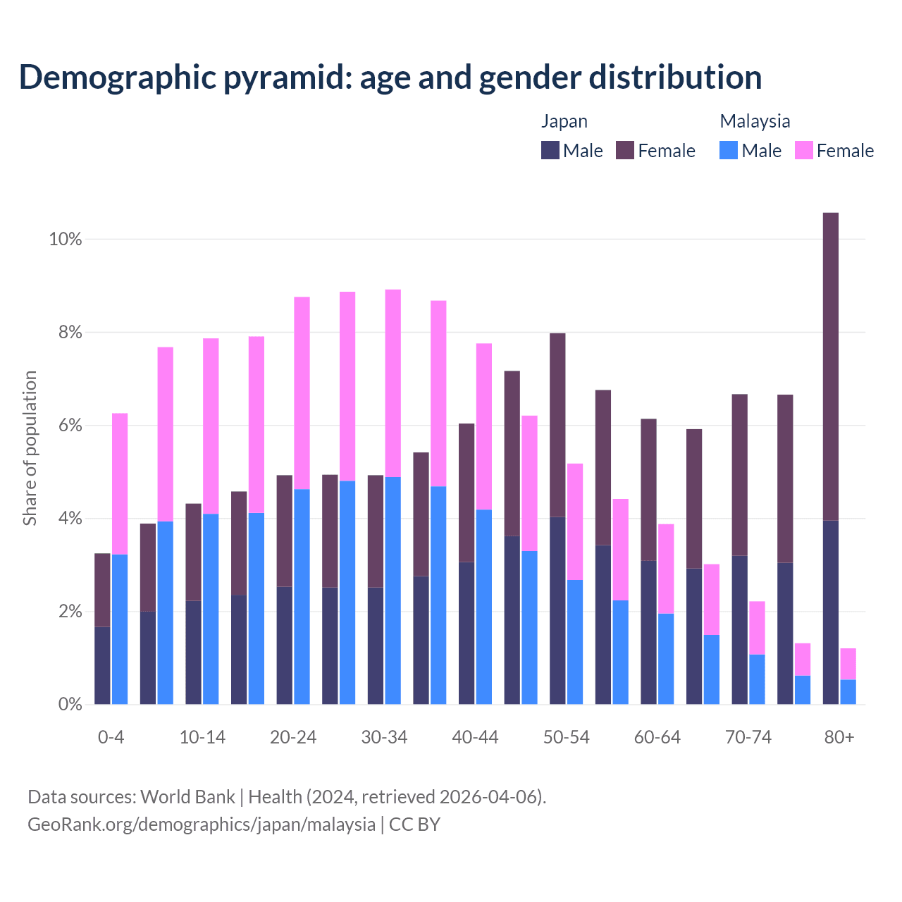Demographics of Japan compared to Malaysia: