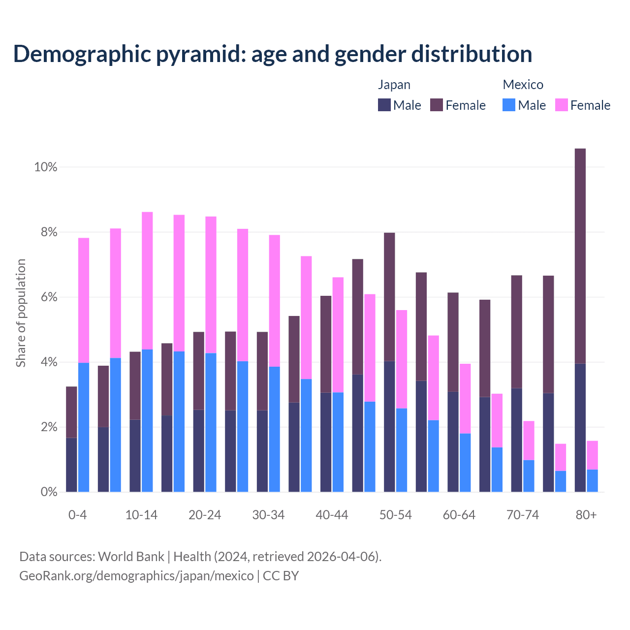 Demographics of Japan compared to Mexico: