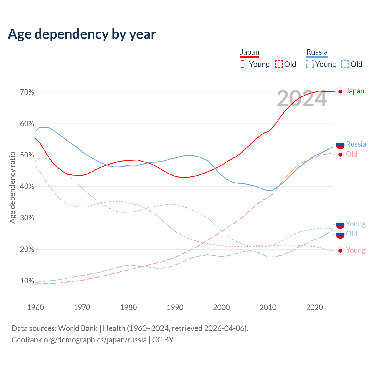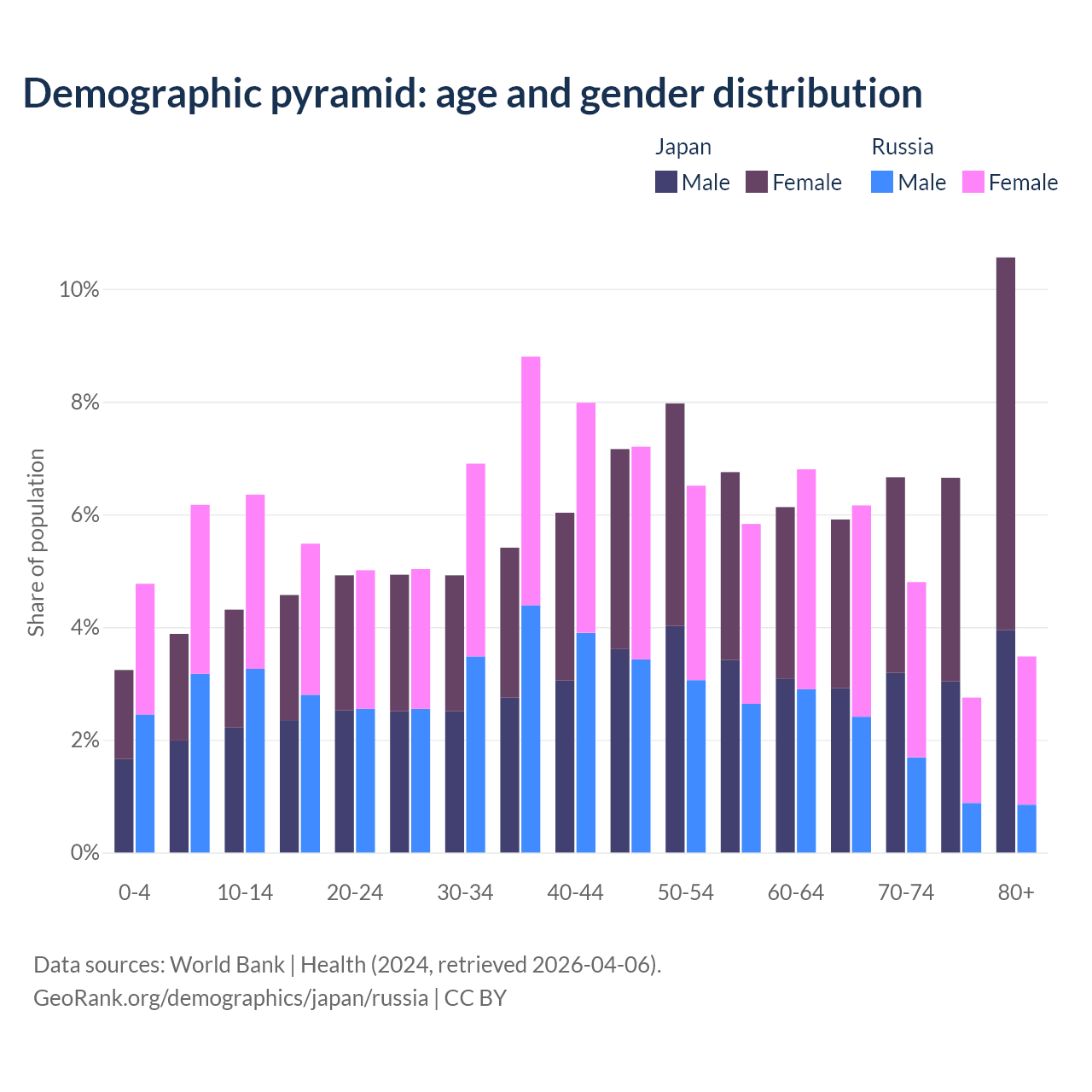 Demographics of Japan compared to Russia: