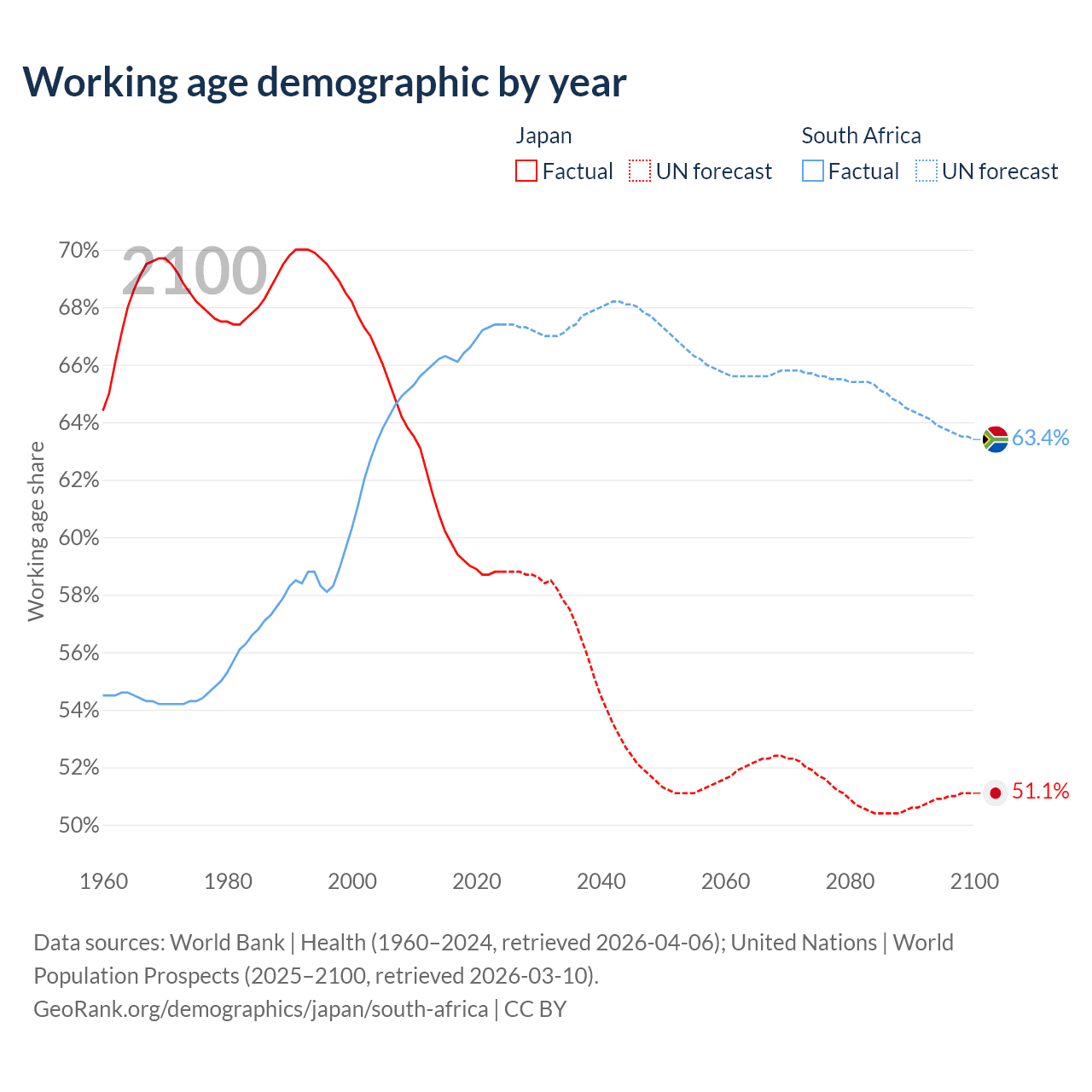 - Japan has 72.1M working age adults (aged 15-64) vs 44.3M in South Africa.