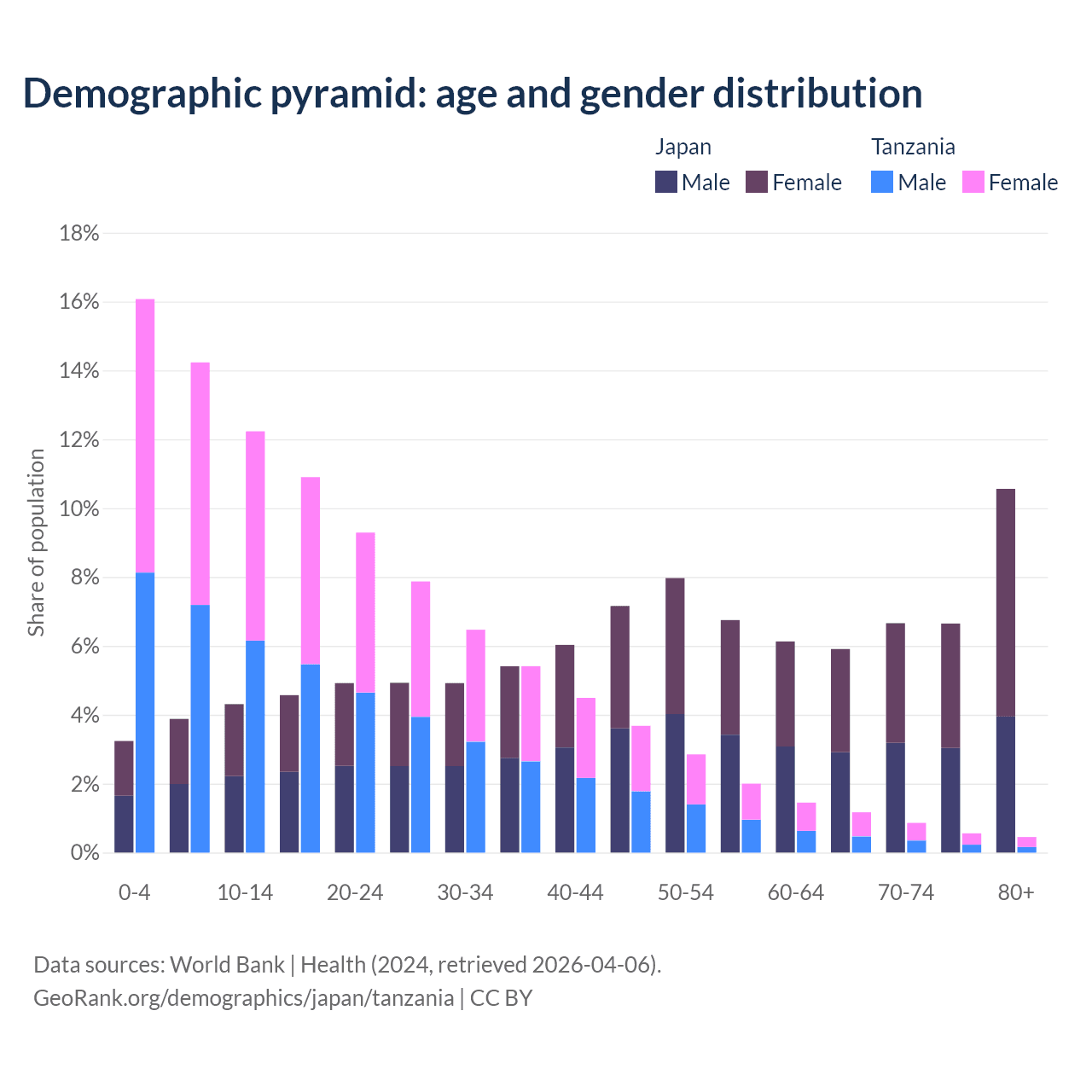 Demographics of Japan compared to Tanzania: