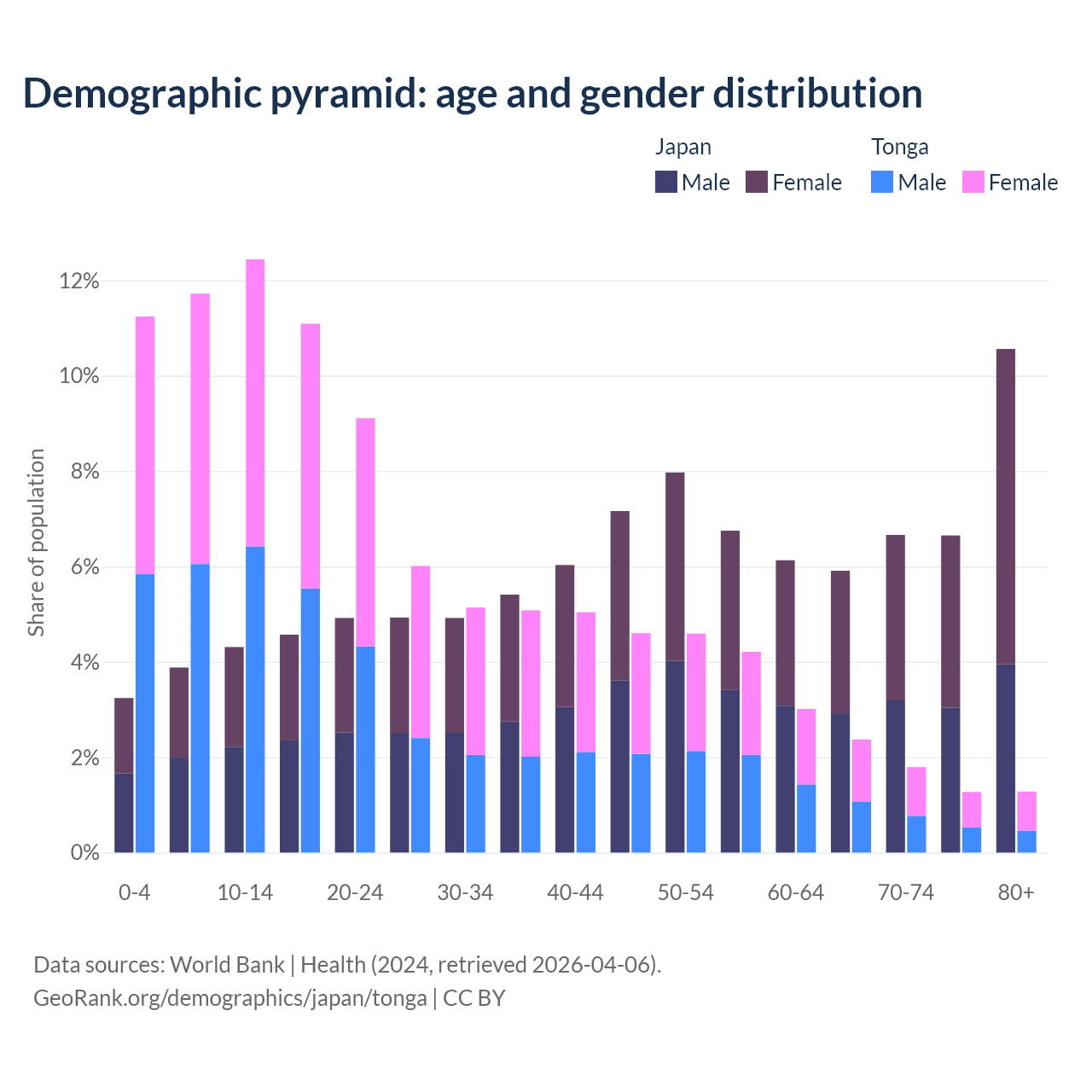Demographics of Japan compared to Tonga: