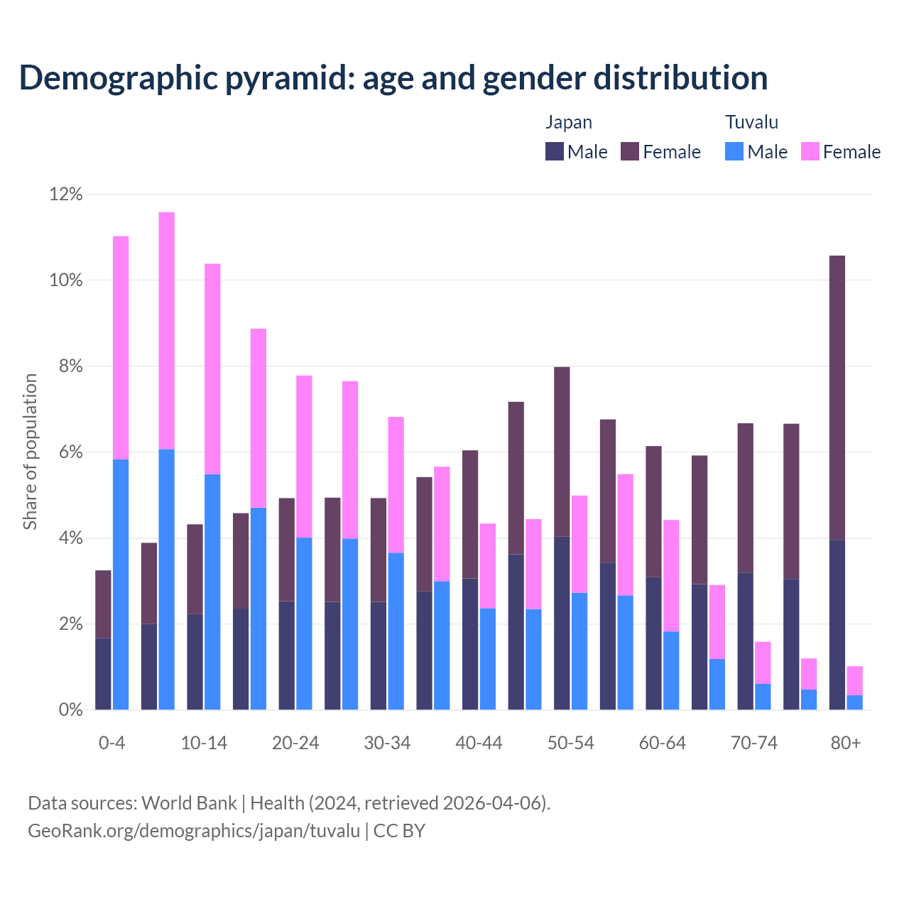 Demographics of Japan compared to Tuvalu: