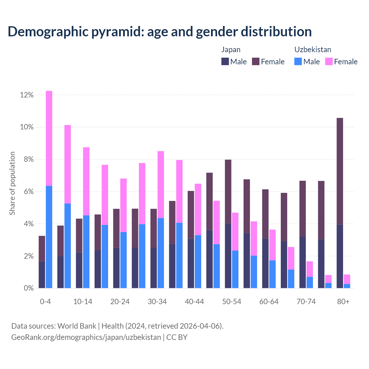 Demographics of Japan compared to Uzbekistan: