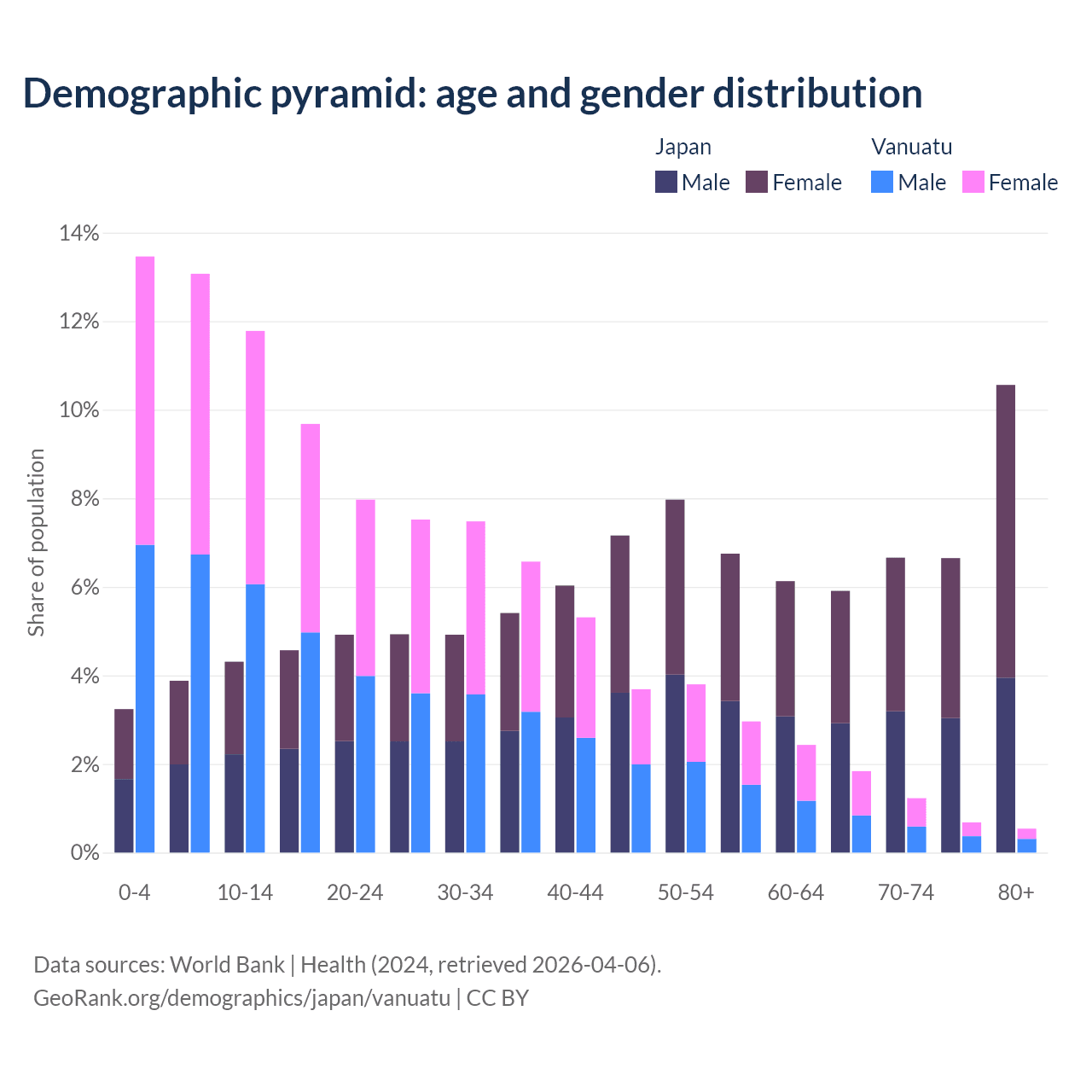 Demographics of Japan compared to Vanuatu:
