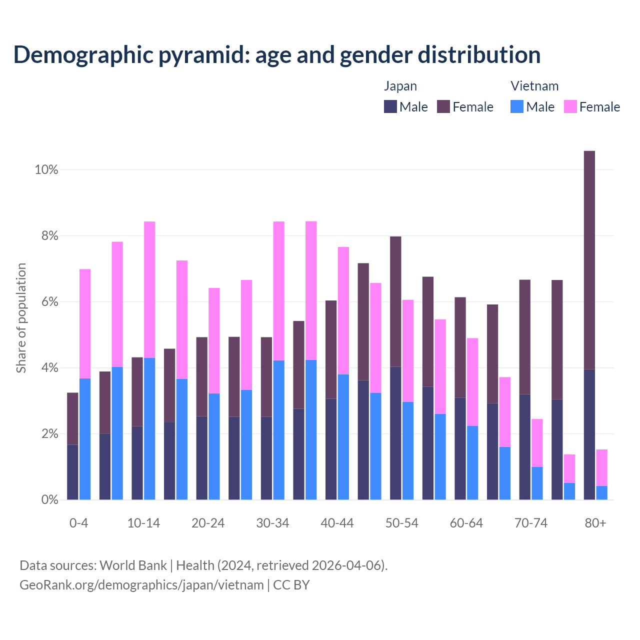 Demographics of Japan compared to Vietnam: