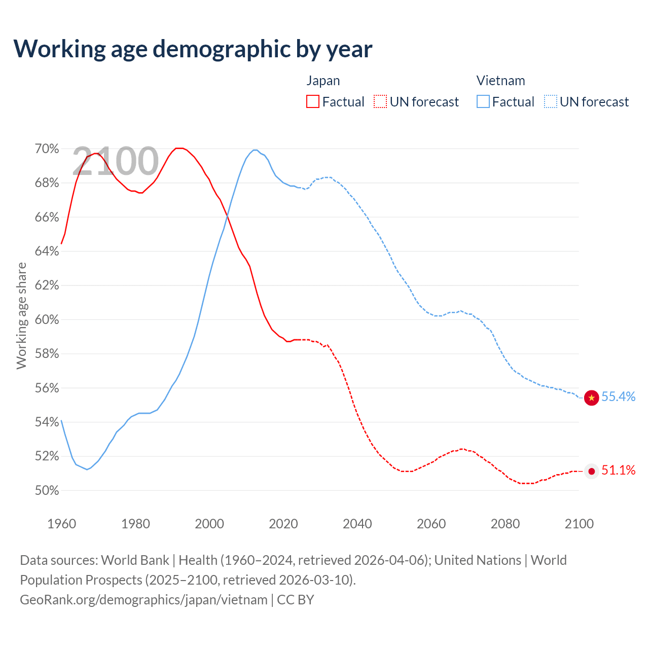 - Japan has 72.1M working age adults (aged 15-64) vs 69.3M in Vietnam.