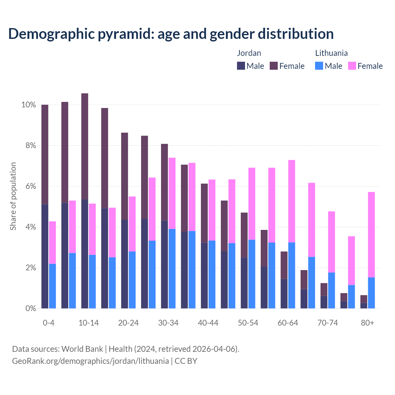 Demographics of Jordan compared to Lithuania: