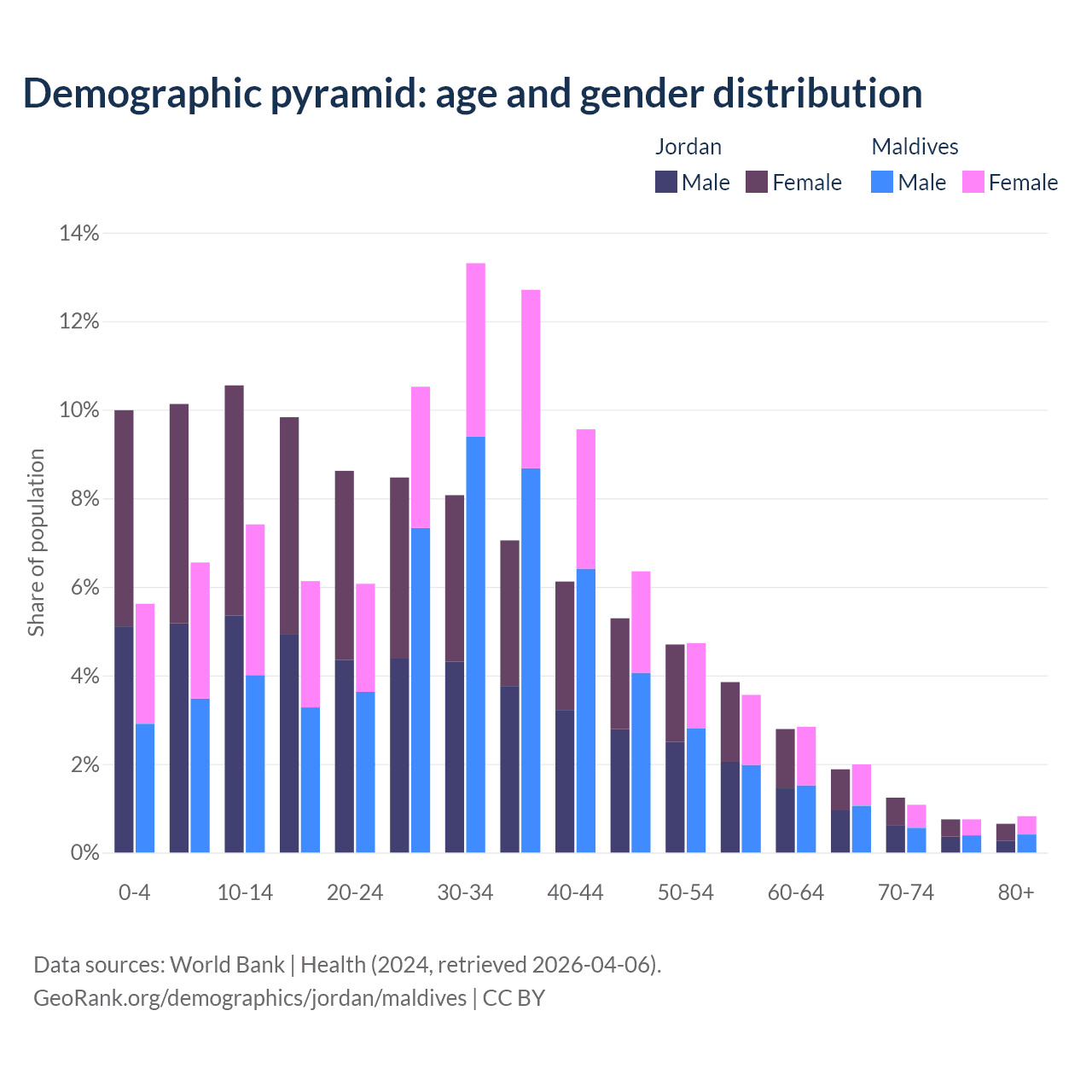 Demographics of Jordan compared to Maldives:
