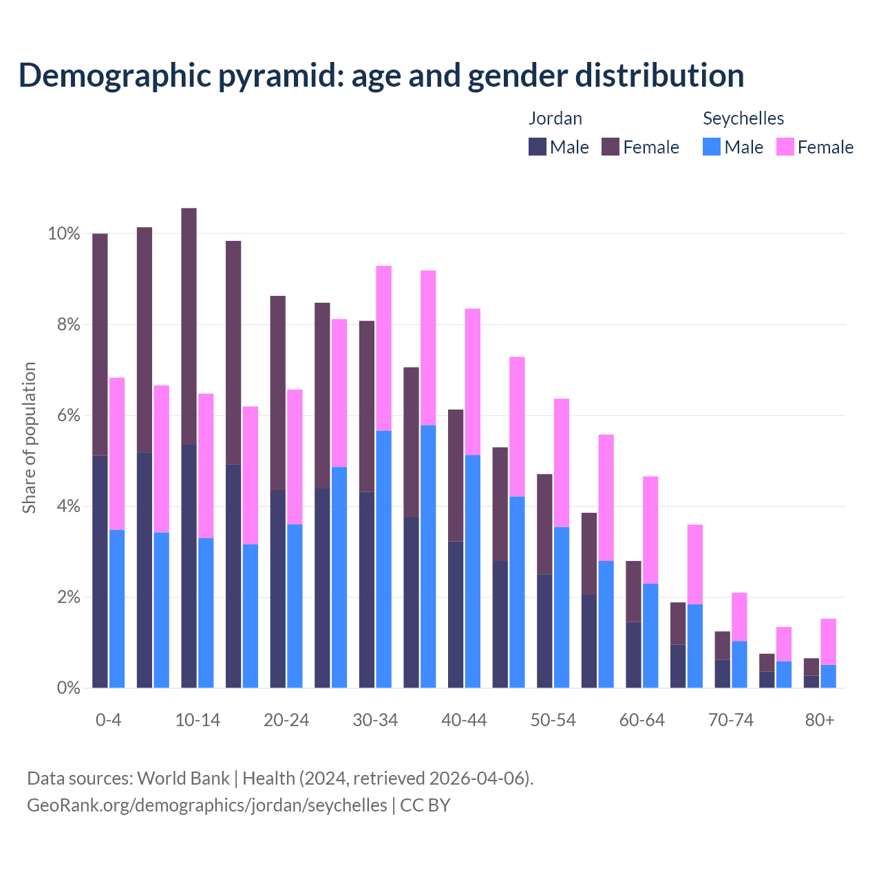 Demographics of Jordan compared to the Seychelles: