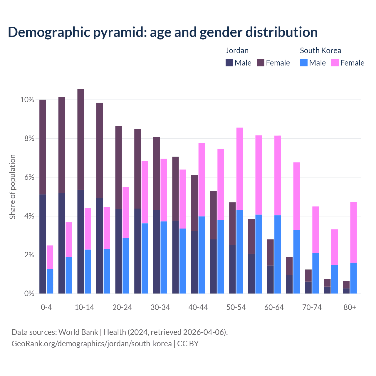 Demographics of Jordan compared to South Korea: