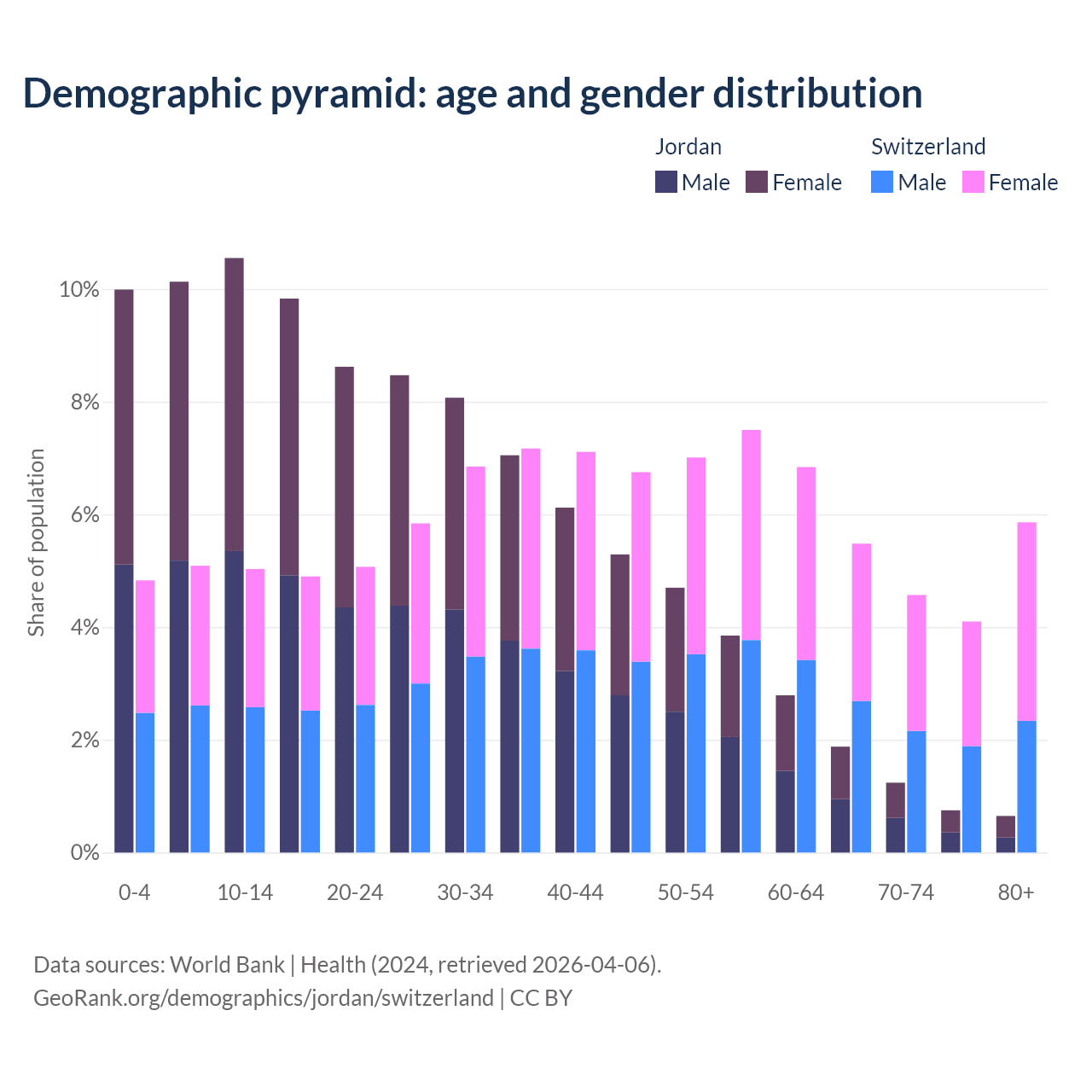Demographics of Jordan compared to Switzerland: