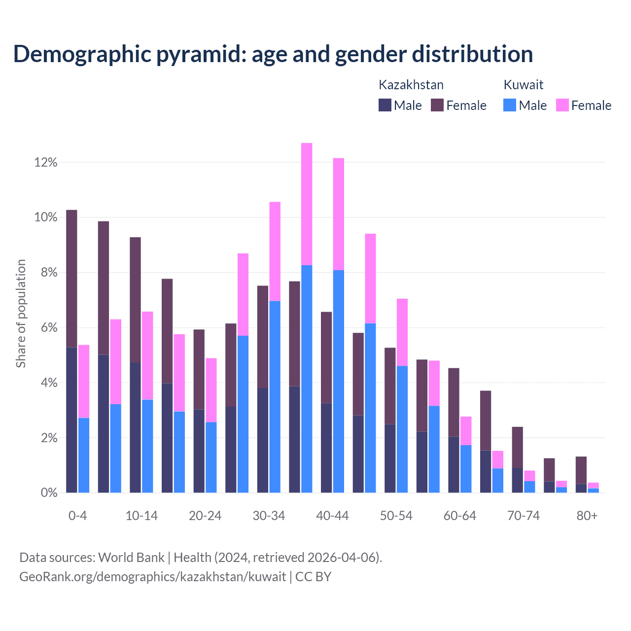 - The median age in Kazakhstan is 30.5 years compared to 35.8 years in Kuwait.