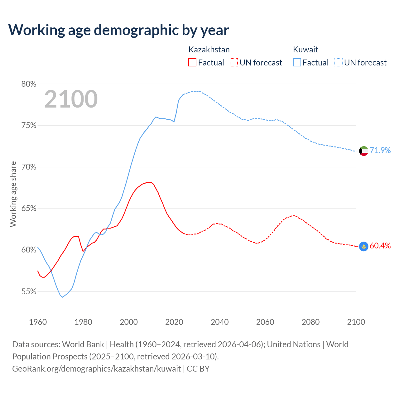 - Kazakhstan has 13.1M working age adults (aged 15-64) vs 4.01M in Kuwait.