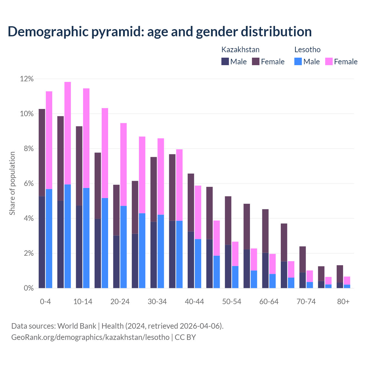 Demographics of Kazakhstan compared to Lesotho: