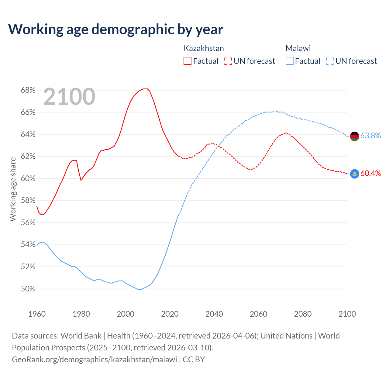- Kazakhstan has 13.1M working age adults (aged 15-64) vs 13M in Malawi.