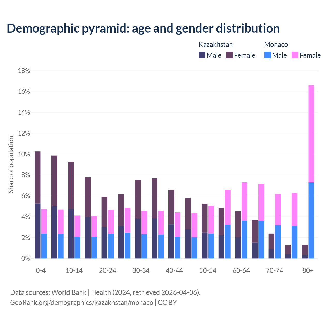 Demographics of Kazakhstan compared to Monaco: