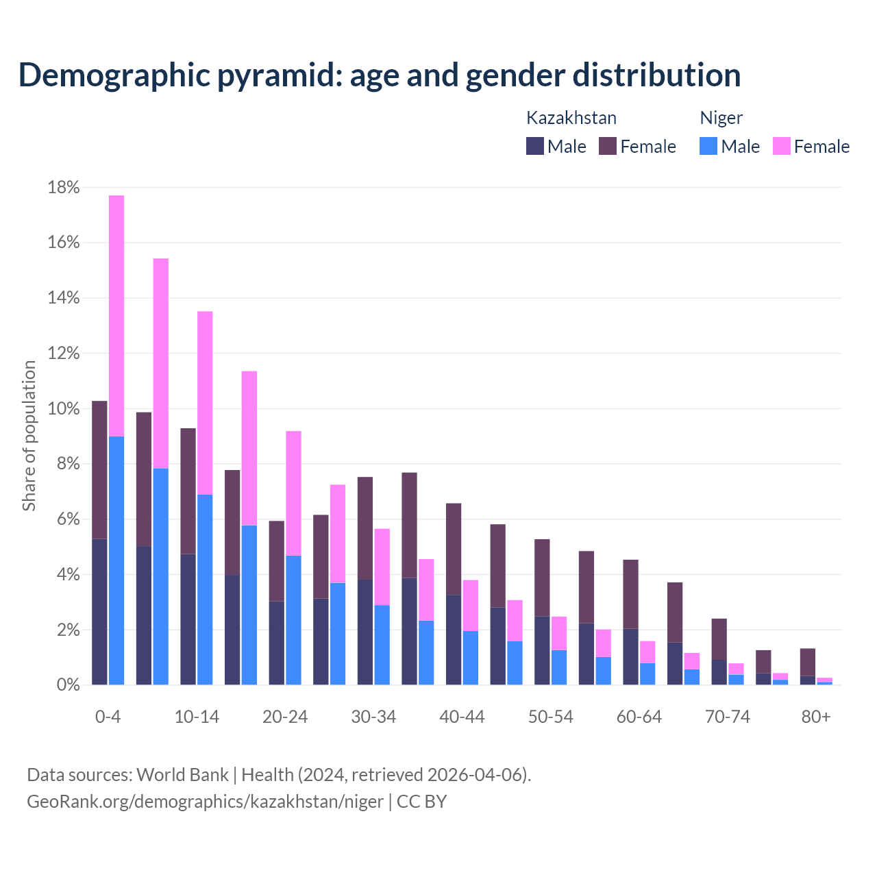 Demographics of Kazakhstan compared to Niger: