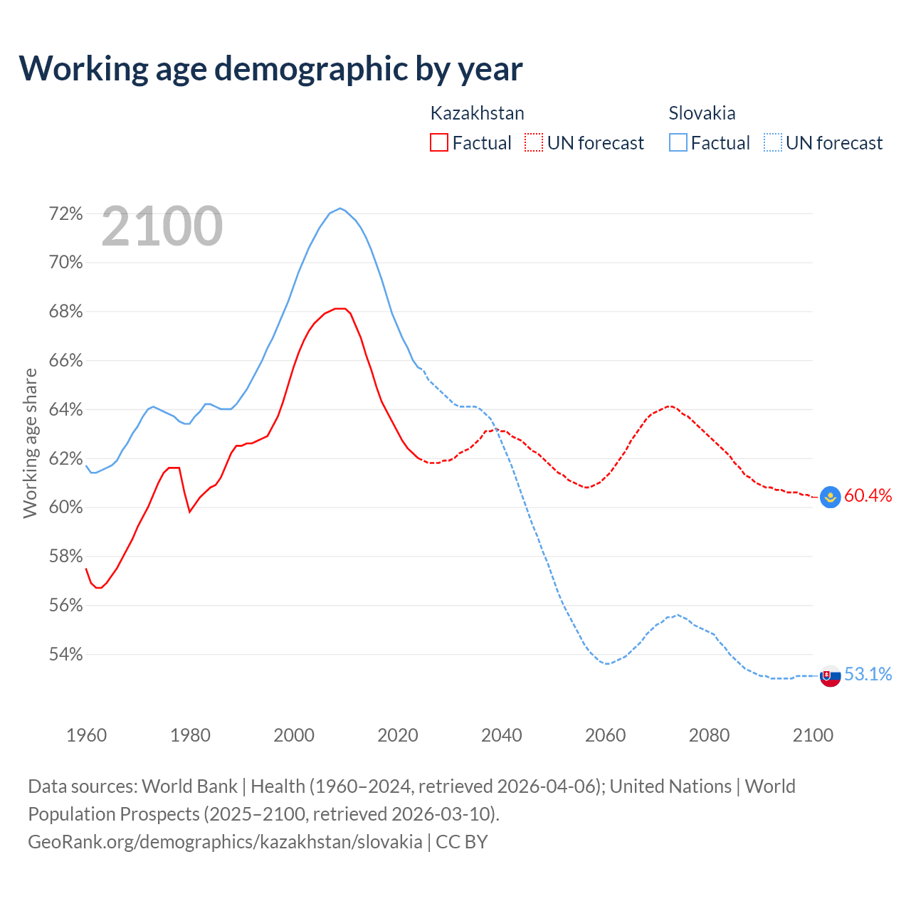 - Kazakhstan has 13.1M working age adults (aged 15-64) vs 3.52M in Slovakia.
