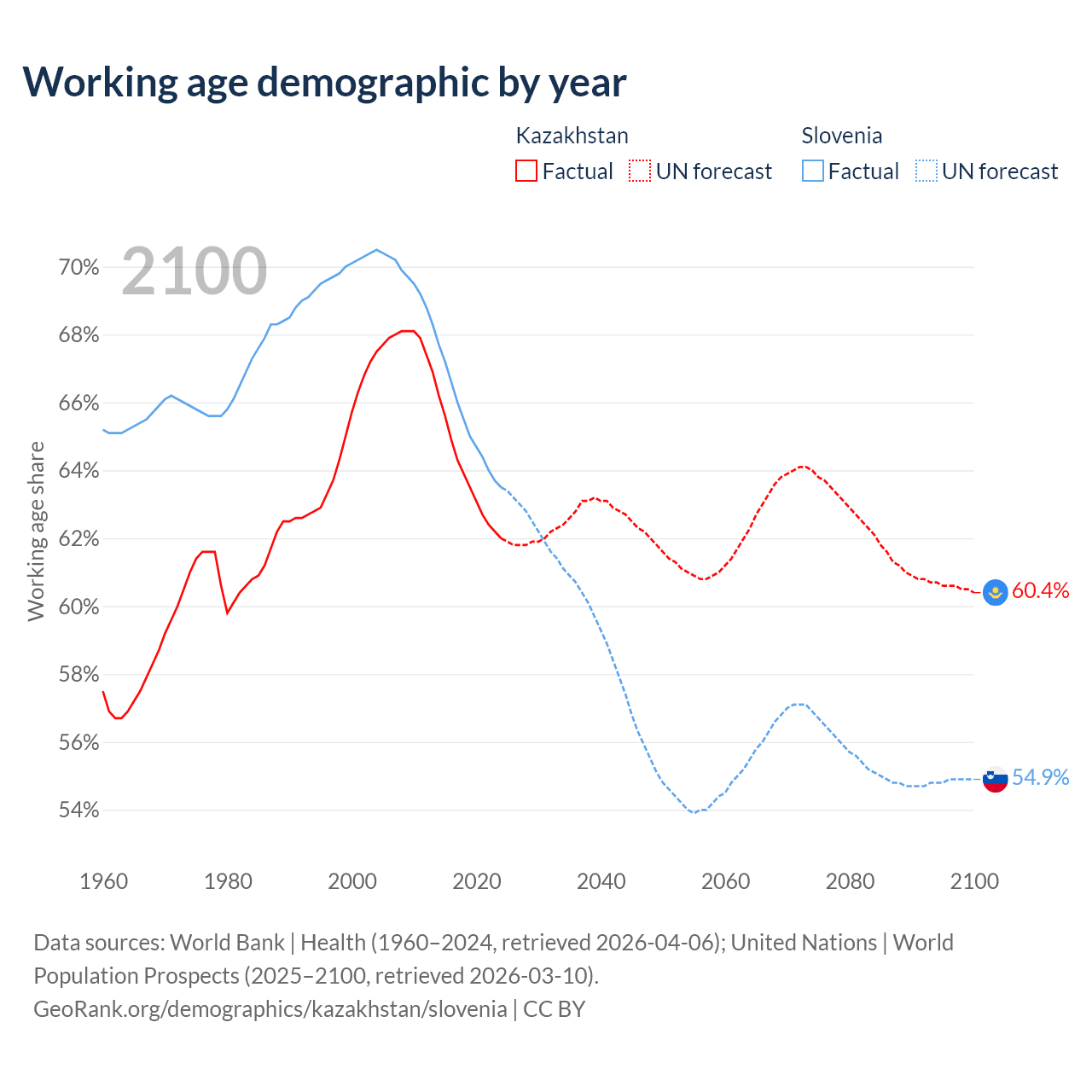 - Kazakhstan has 13.1M working age adults (aged 15-64) vs 1.35M in Slovenia.