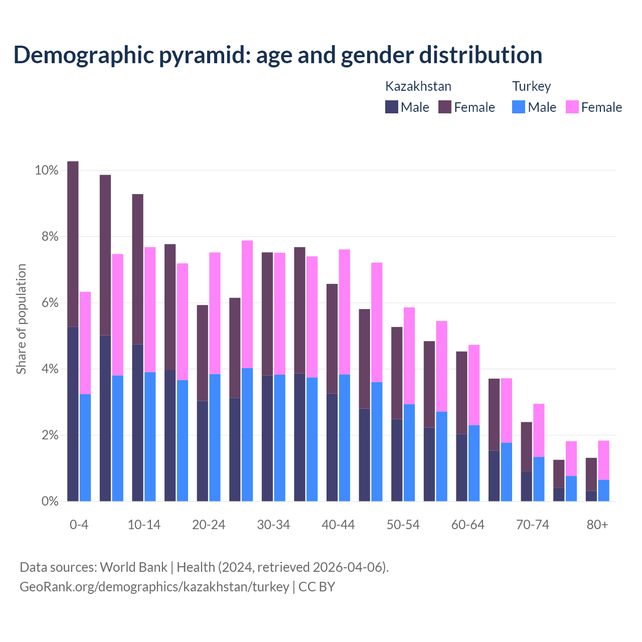 Demographics of Kazakhstan compared to Turkey: