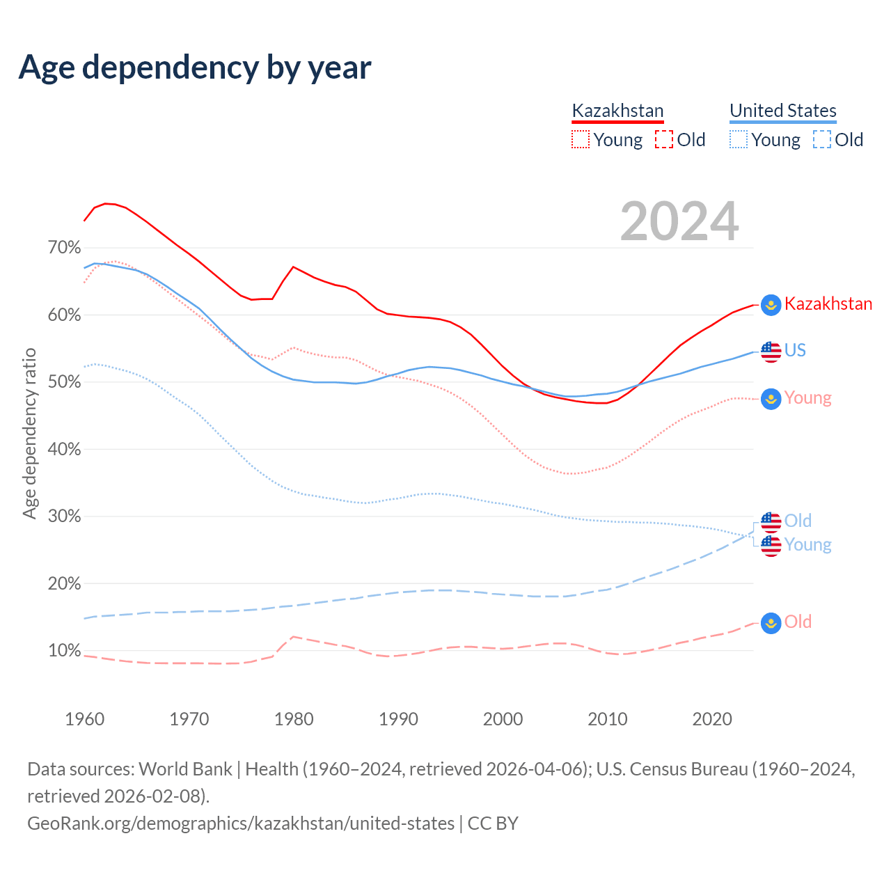 - World Bank | Health (1960–2024, retrieved 2026-04-06)