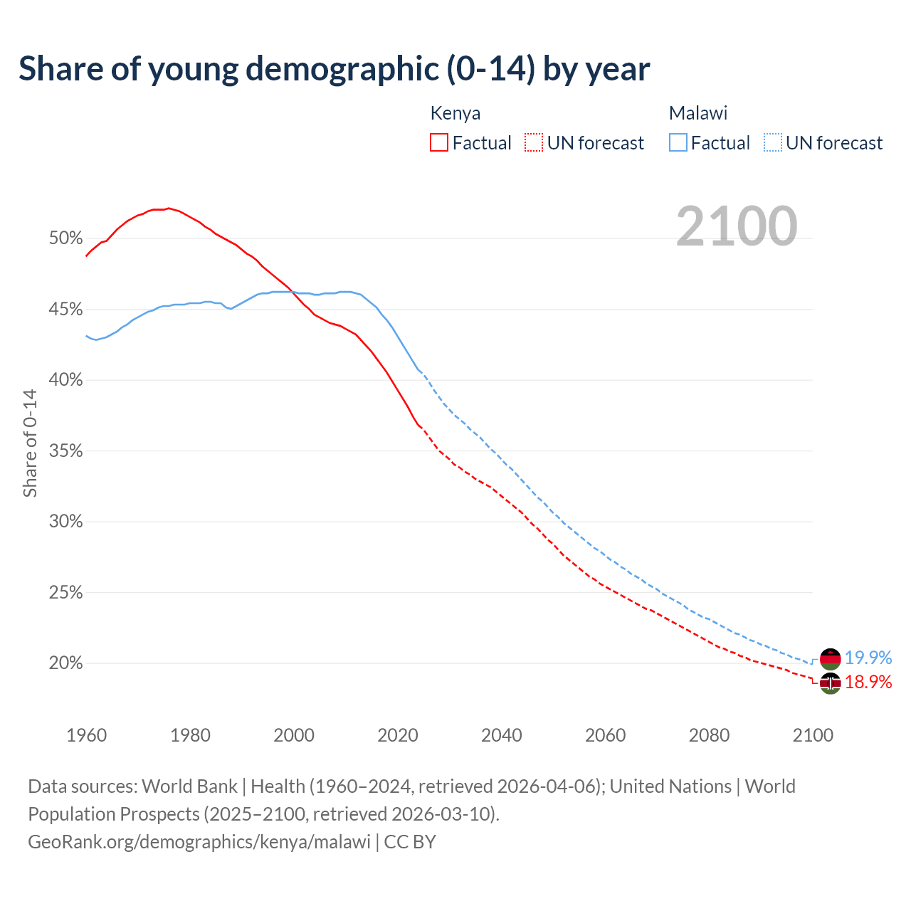 - As of 2026, the population of Kenya is 59M vs 22.9M in Malawi - 2.57 times difference.
