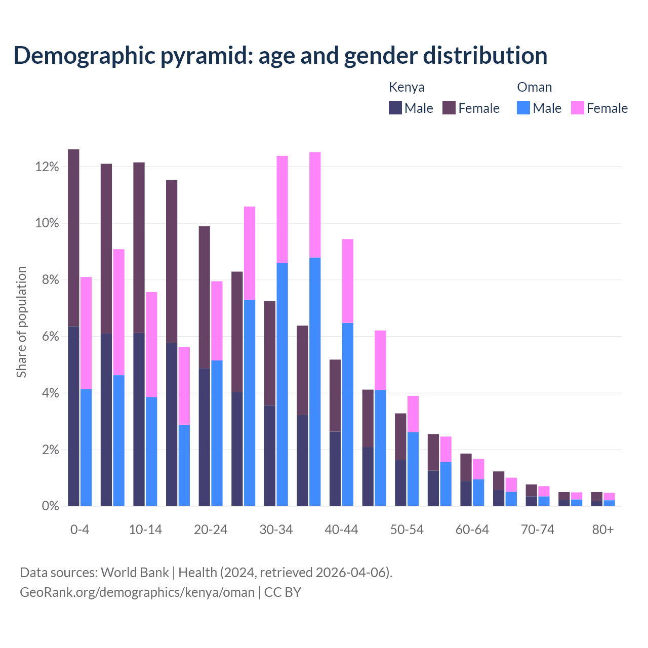 Demographics of Kenya compared to Oman: