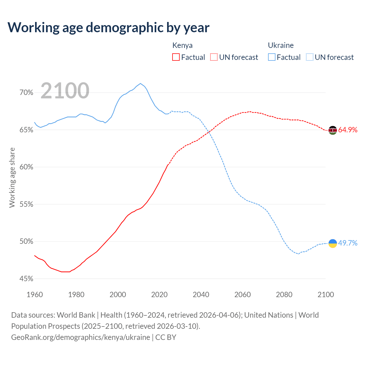 - Kenya has 35.5M working age adults (aged 15-64) vs 26.9M in Ukraine.