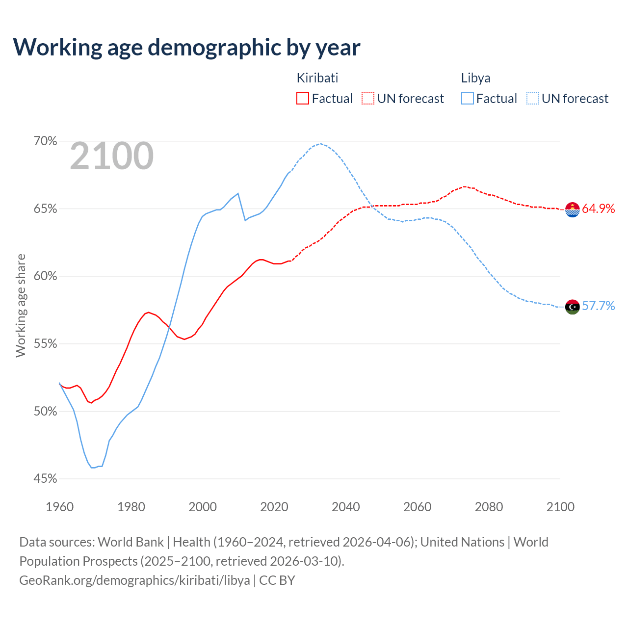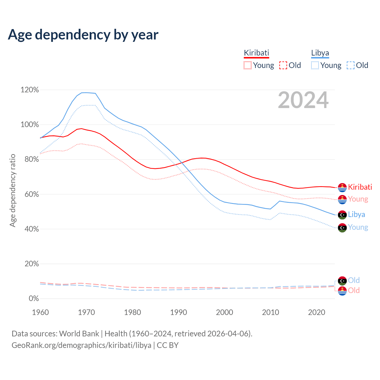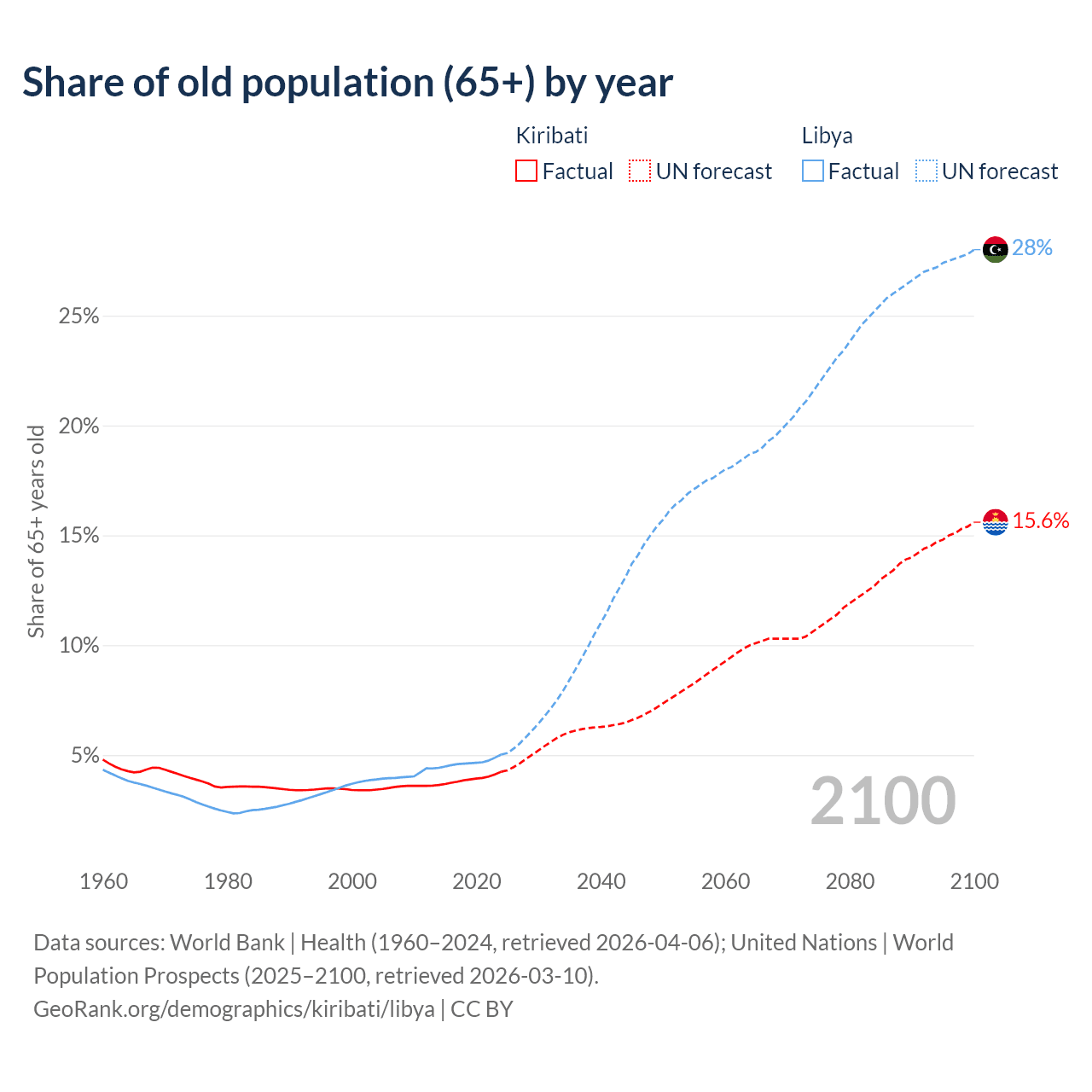 - The share of old-age demographic (65+) in Kiribati is 4.24% vs 5.02% in Libya.