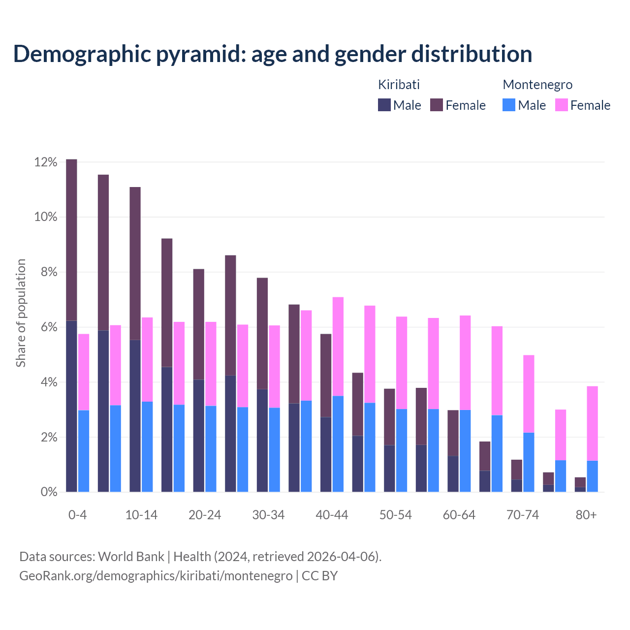 Demographics of Kiribati compared to Montenegro: