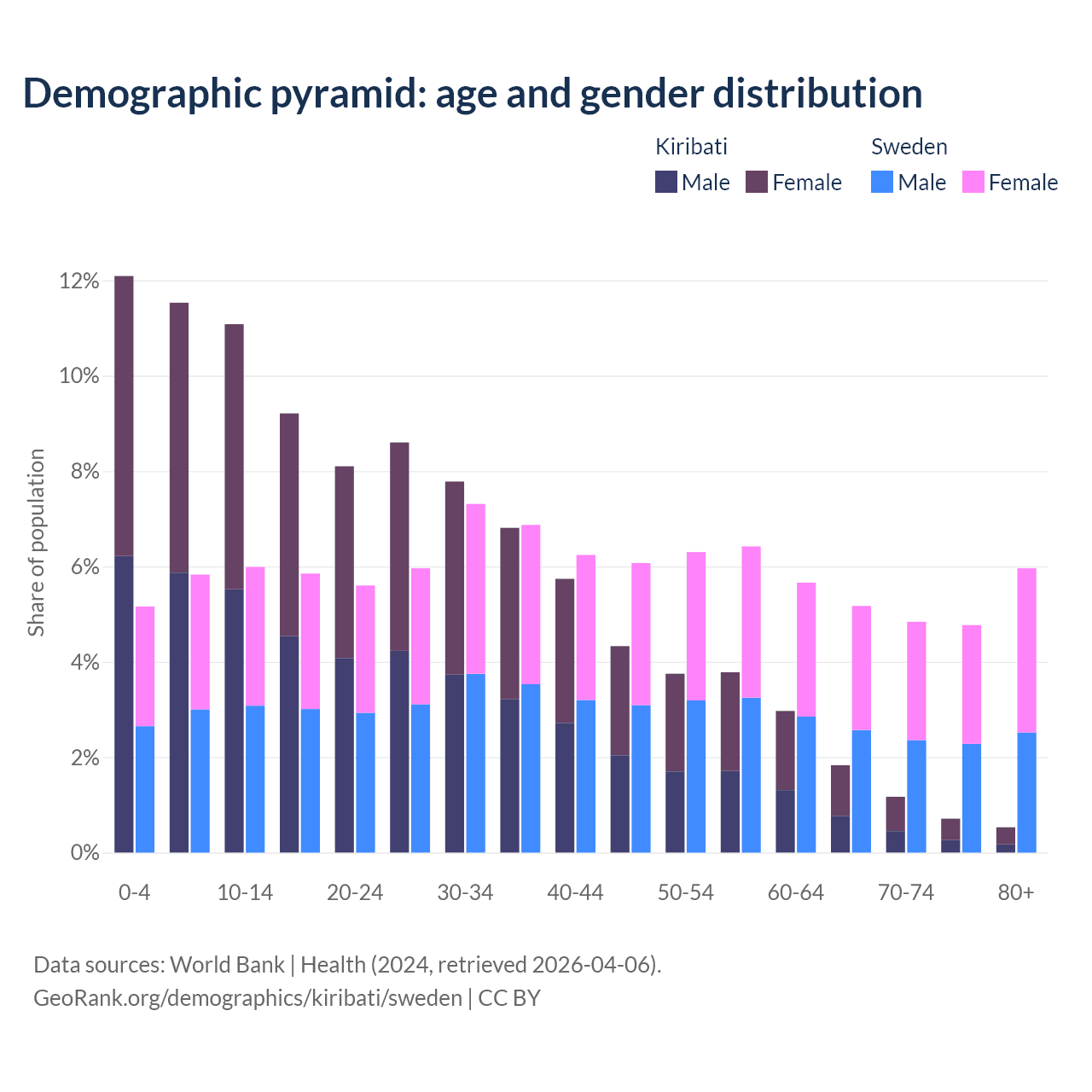 Demographics of Kiribati compared to Sweden: