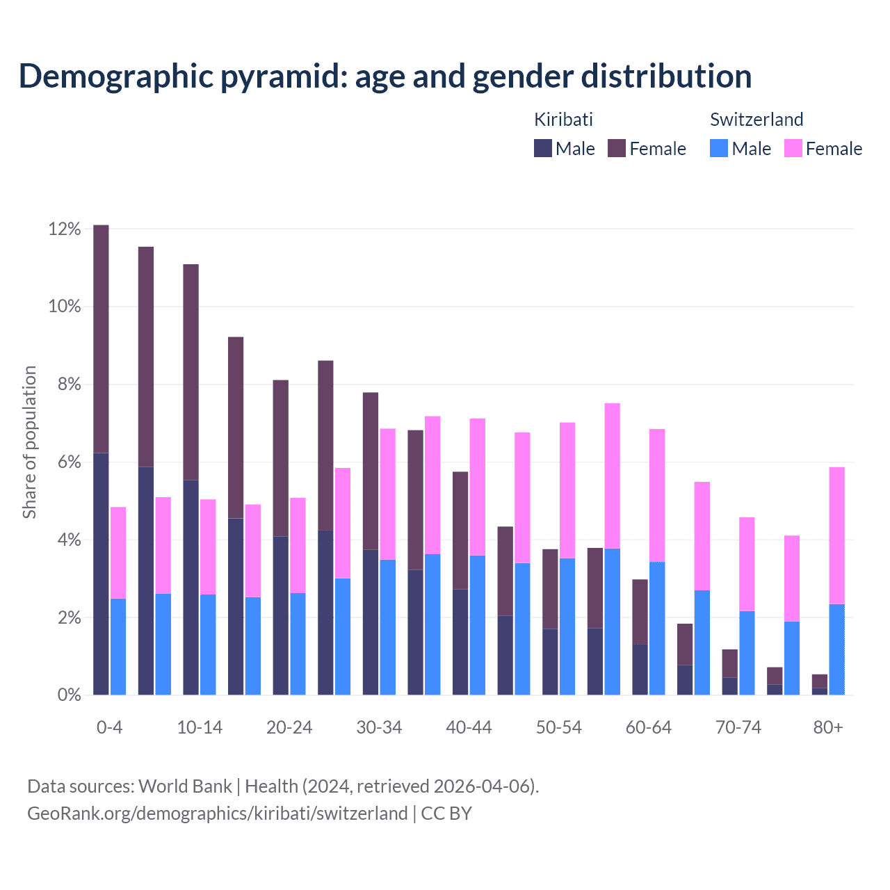 Demographics of Kiribati compared to Switzerland: